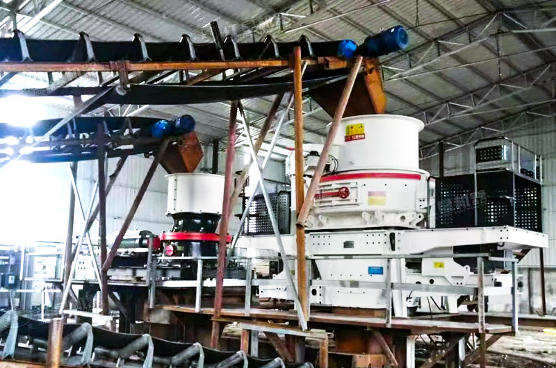 制砂的產量和整條生產線的設備都有關系,生產線前端的顎破、圓錐破、輸送機等的處理量都要與制砂機匹配,比如上游產量過大而制砂機處理不及,就會出現堵料的問題。