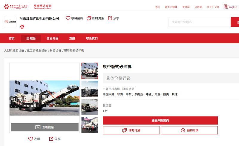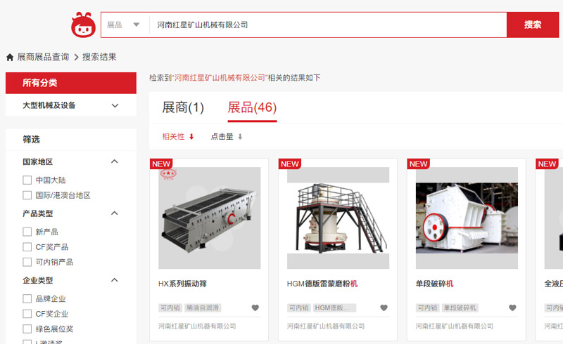 然后,在搜索欄輸入河南紅星礦山機器有限公司即進入展品頁面。