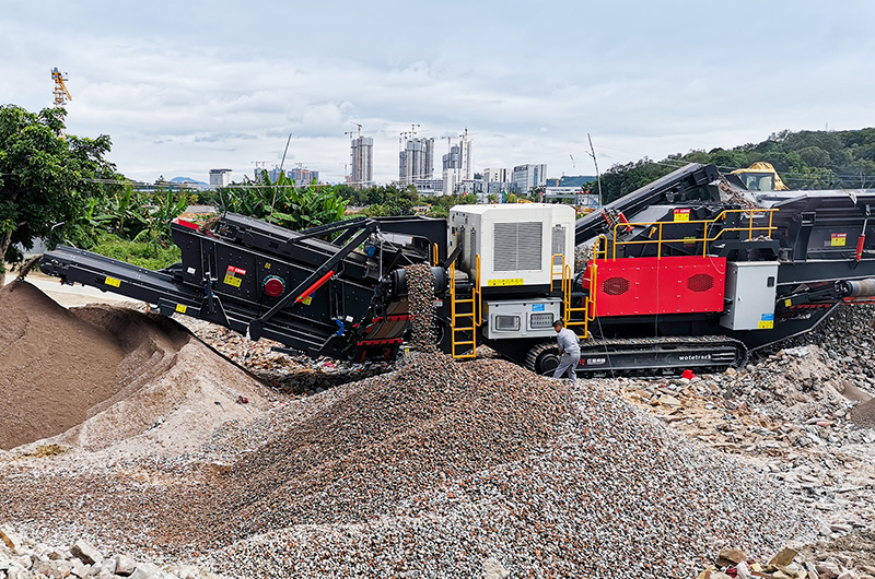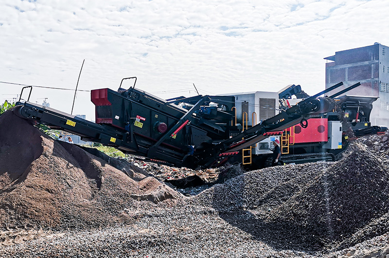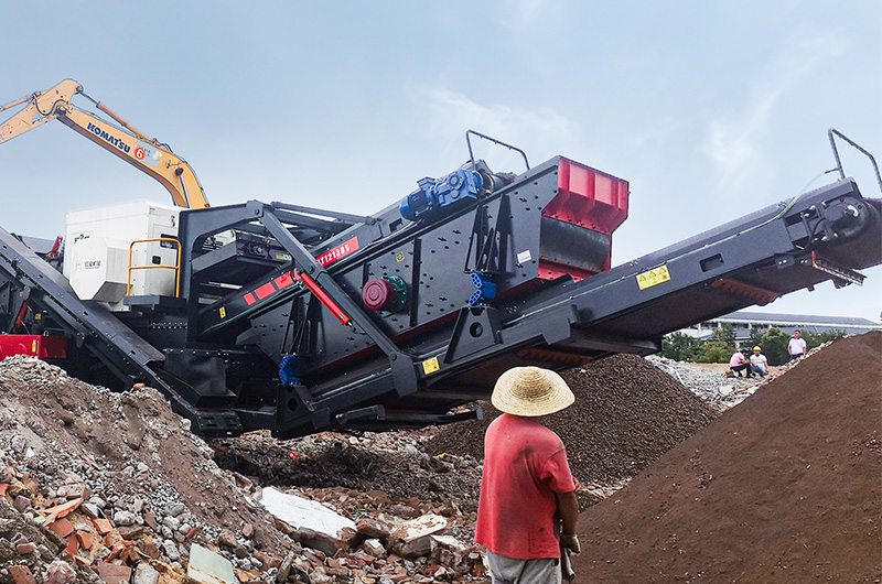 (紅星履帶式移動破碎篩分站處理建筑垃圾現場)