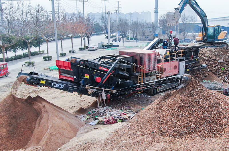(紅星履帶移動破碎篩分站處理建筑垃圾項目現場)